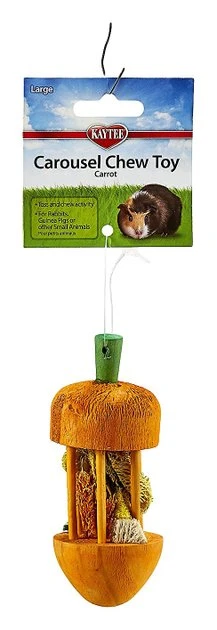 Kaytee’s Carousel Carrot Chew Toy provides your pet with hours of fun! This toy is designed to help reduce boredom with the enticing carrot shape and the combination of wood and loofah pieces that are perfect for chewing. The wood helps trim your sidekick’s teeth, while the soft loofah works as floss to clean those hard-to-reach places. Not only is this carrot crafted for a ton of gnawing fun, but it will also help promote healthy teeth and gums! And you can feel good knowing that every part is 100% natural and safe for your pet to chew.