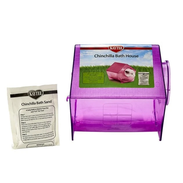 The Kaytee Chinchilla Bath House gives your pet chinchilla a place for dust or sand bathing. Instead of bathing in water, chinchillas need to take dust baths to absorb oils and dirt to keep their fur clean and healthy. The Kaytee Chinchilla Bath House gives them the perfect place to bathe, complete with bath sand that’s made to mimic the volcanic ash found in their natural environment. It’s made from a durable translucent plastic with an enclosed design that helps prevent the sand from spilling out.