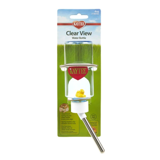 Keep your small sidekick’s water supply safe with the Kaytee Chew-Proof Water Bottle. This water bottle for small pets is constructed using clear glass and stainless steel. It features a spring attachment hanger to hold the bottle securely in your buddy’s wire habitat. This chew-proof water bottle is equipped with a unique double-ball bearing sipper tube that’s drip resistant as well as a fun floating duck reminder. It’s paw-fect for your rabbit, ferret, guinea pig, chinchilla and more.