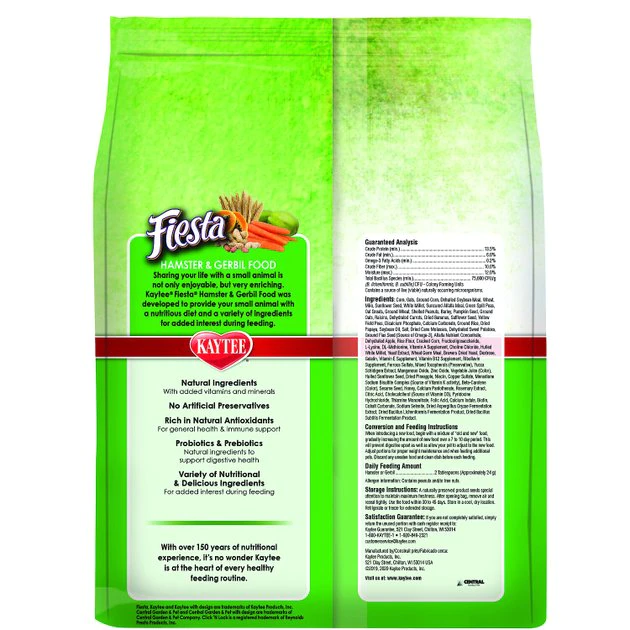 You donโt want to feed your pet just anything, and with Kaytee Fiesta Natural Mouse & Rat Food, you can be sure every small animal in your home is getting optimal nutrition. It offers a nutritional gourmet diet chock-full of fruits, vegetables, seeds, and grains with added prebiotics and probiotics for digestive health. There also arenโt any pesky artificial colors or preservatives in this formula, since you want wholesome nutrition that happens to be delicious for your favorite little pet.