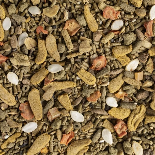 Suncured Timothy Grass Hay; Soybean Hulls; Oats; Suncured Alfalfa Hay; Ground Oats; Dehulled Soybean Meal; Wheat Middlings; Sunflower Seed; Barley; Oat Groats; Shelled Peanuts; Ground Wheat; Ground Corn; Wheat; Ground Flax Seed (Source of Omega 3); Dried Cane Molasses; Dehydrated Carrots; Raisins; Dried Bananas; Dried Papaya; Pumpkin Seed; Safflower Seed; Dried Pineapple; Ground Rice; Dehydrated Sweet Potatoes; Soybean Oil; Salt; Dicalcium Phosphate; Alfalfa Nutrient Concentrate; DL-Methionine; Rice Flour; Fructooligosaccharide; Calcium Carbonate; Vitamin A Supplement; Choline Chloride; Yeast Extract; L-Lysine; Yucca Schidigera Extract; Mixed Tocopherols (Preservative); Brewers Dried Yeast; Wheat Germ Meal; Vitamin E Supplement; Vitamin B12 Supplement; Riboflavin Supplement; Copper Sulfate; Ferrous Sulfate; Vegetable Juice (Color); Manganous Oxide; Zinc Oxide; Menadione Sodium Bisulfite Complex (Source of Vitamin K activity); Niacin; Beta-Carotene (Color); Sesame Seed; Rosemary Extract; Citric Acid; Calcium Pantothenate; L-Ascorbyl-2-Polyphosphate (Source of Vitamin C); Cholecalciferol (Source of Vitamin D3); Pyridoxine Hydrochloride; Thiamine Mononitrate; Folic Acid; Calcium Iodate; Biotin; Cobalt Carbonate; Sodium Selenite; Dried Aspergillus Oryzae Fermentation Extract; Dried Bacillus Licheniformis Fermentation Product; Dried Bacillus Subtilis Fermentation Product.
