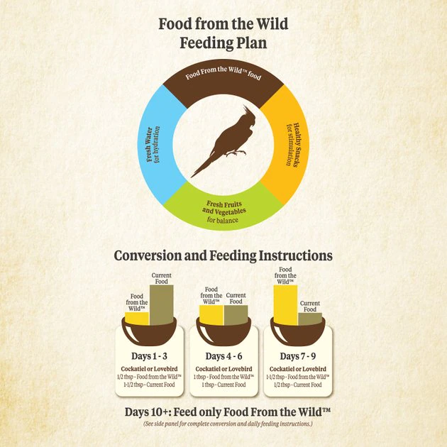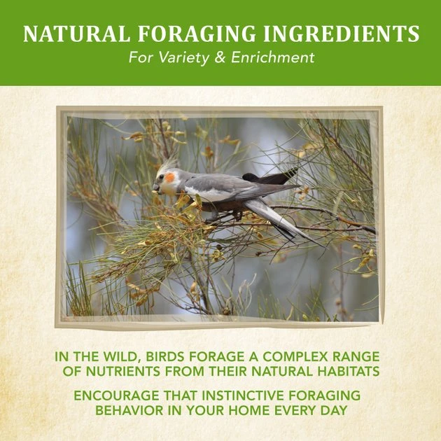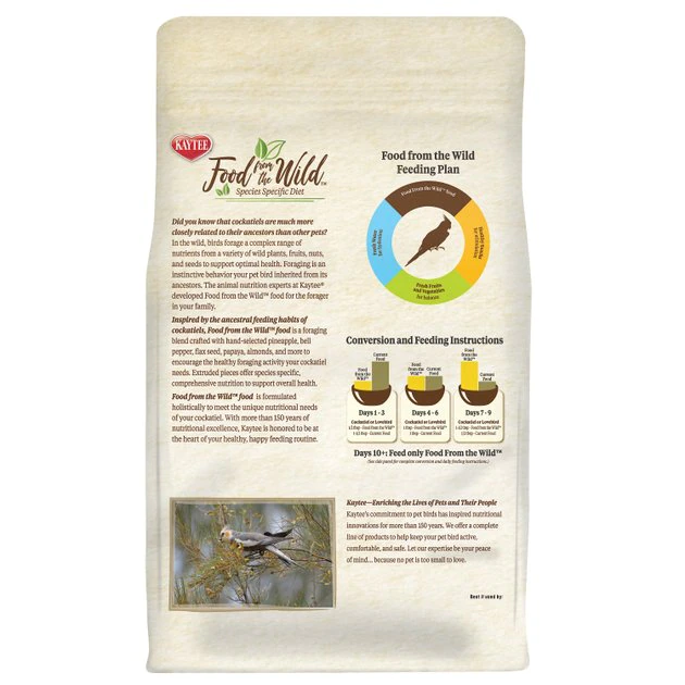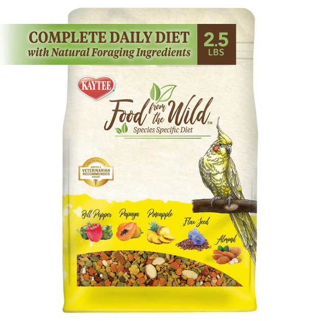 Your feathered friend wonโt be able to resist snacking on Kaytee Food from the Wild Cockatiel Bird Food. Inspired by the natural habitats of cockatiels, this nutritious food is made with delicious natural ingredients including corn, rice, fruit and seeds. Better yet, it doesnโt contain any artificial preservatives. Your birdie is sure to chirp with delight at mealtimes when you serve this food!