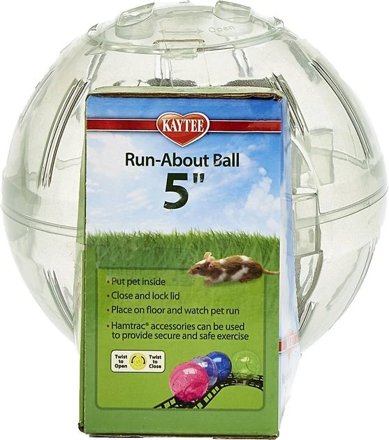 Give your miniature best mate a toy that’ll match his adventurous spirit with the Kaytee Mini Run-About 5” Dwarf Hamster Exercise Ball. This pint-size accessory was made to allow your curious critter to safely maneuver with greater ease as he explores from room to room. The toy is great for relieving excess energy and is paw-fect for interactive play. Use the ball as a temporary holding space for when you need to clean your best bud’s habitat.