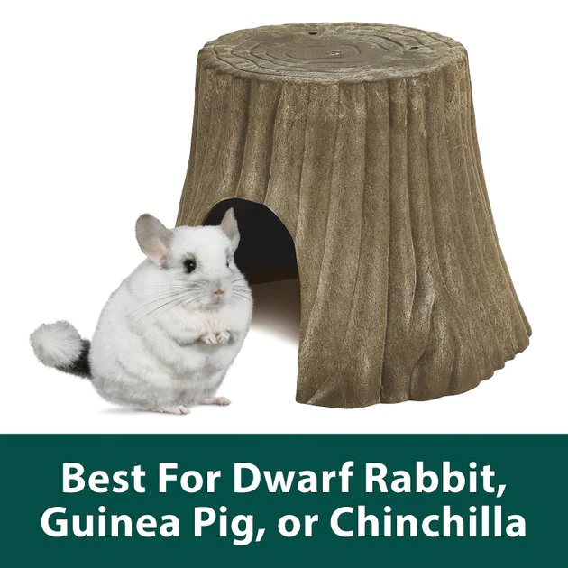 Give your small pet a safe place to rest and hide with the Kaytee Natural Tree Trunk Small Animal Hideout. It’s made from a composite of recycled wood and plastic and is completely safe for small animals. The tree trunk stump has a unique design and is ideal for rabbits, guinea pigs, chinchillas and other critters that like to burrow and nest.
