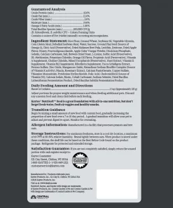 Rice Flour, Ground Wheat, Soybean Oil, Vegetable Glycerin, Corn Gluten Meal, Dehulled Soybean Meal, Water, Sucrose, Ground Flax Seed (Source of Omega-3), Citric Acid (Preservative), Dried Molasses Beet Pulp, Lecithin, Dextrose, Gelatin, Dried Apple, Honey, Fructooligosaccharide, Dried Vinegar, Dicalcium Phosphate, Calcium Carbonate, Salt, Brewers Dried Yeast, L-Lysine, Sorbic Acid (Preservative), DL-Methionine, Potassium Chloride, Orange Oil, Propionic Acid (Preservative), Vitamin A Supplement, Choline Chloride, Mixed Tocopherols (Preservative), Yeast Extract, Vitamin E Supplement, Vitamin B12 Supplement, Riboflavin Supplement, Yucca Schidigera Extract, Ferrous Sulfate, Zinc Oxide, Manganous Oxide, Menadione Sodium Bisulfite Complex (Source of Vitamin K activity), Niacin, Rosemary Extract, Calcium Pantothenate, Copper Sulfate, Thiamine Mononitrate, Pyridoxine Hydrochloride, Folic Acid, Cholecalciferol (Source of Vitamin D3), Calcium Iodate, Biotin, Cobalt Carbonate, Sodium Selenite, Dried Bacillus Licheniformis Fermentation Product, Dried Bacillus Subtilis Fermentation Product.