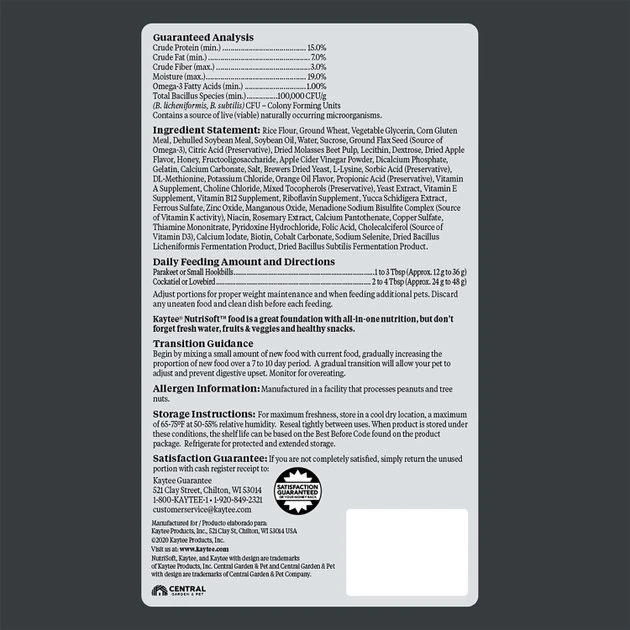 If your pet bird is a picky eater, then try Kaytee NutriSoft Parakeet & Cockatiel Bird Food. This nutritious bird food has a soft texture, similarly to fruits and veggies that your bird buddy would eat in the wild. And not only is it nutritious, but it is also delicious because it features the natural fruit flavors your feathered friend instinctually craves. And since every bite is loaded with optimum nutrition, you can feel confident that your bird is getting the vitamins and minerals he needs!