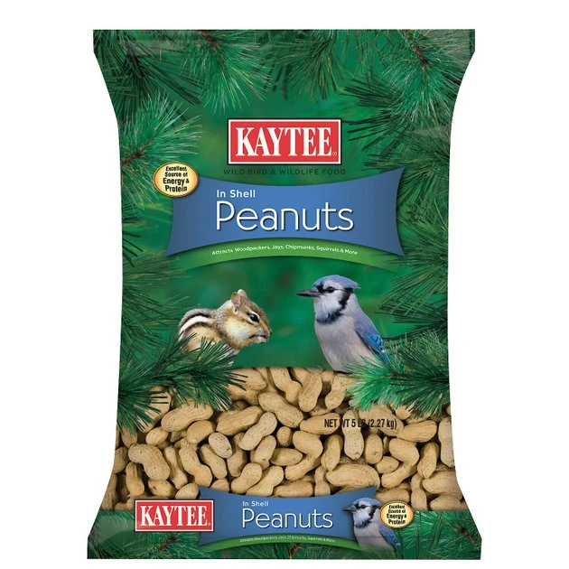 Your feathered friends will go nuts over Kaytee Peanuts In A Shell Wild Bird Food. These whole peanuts have a rich texture and taste that appeals to many birds, including woodpeckers and blue jays. The high fat content gives your birdie friends energy, while high protein promotes growth. Theyβre rich in vitamins and minerals for overall nutrition support. You can also feed these peanuts to chipmunks, squirrels and other critters who will love this nutritious, tasty snack.