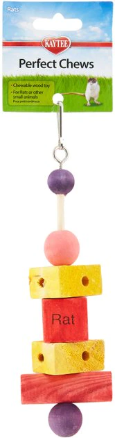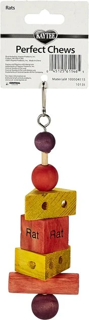 The Kaytee Perfect Chews Rat Toy helps keep your pet rat’s teeth trim and healthy. A rat’s long incisors are made for gnawing, and it’s something he’ll spend a lot of time doing. This chewable wood toy takes care of that urge in a healthy way and prevents destructive chewing. You can hang it anywhere in the cage so your whiskered friend can enjoy chomping away on the colorful blocks and fun cheese wedge shapes.