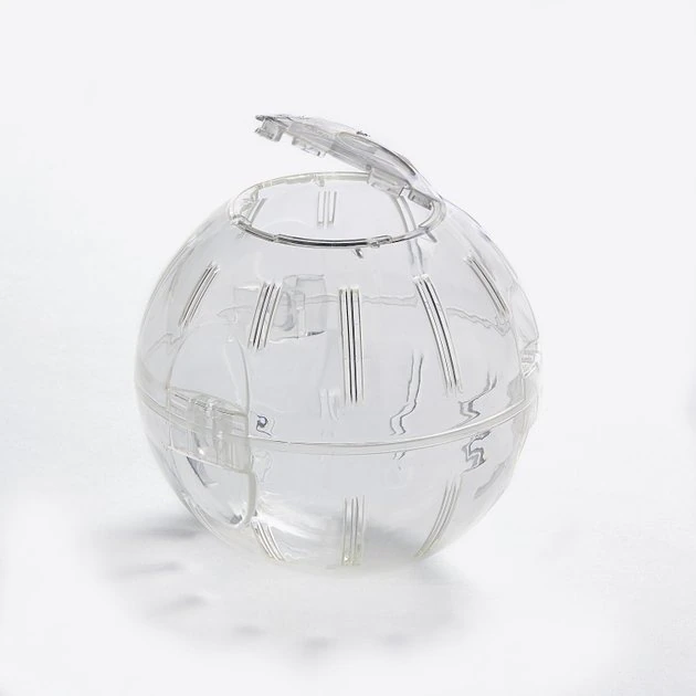 - Clear exercise ball is available in four sizes to fit most small pets; 7-inch ball is also available in moon glow transparent green.