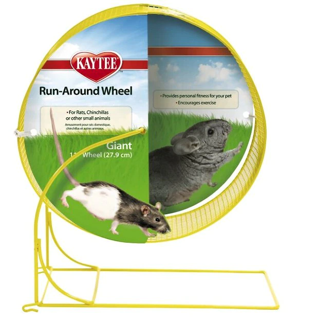 The Kaytee Run-Around Small Animal Exercise Wheel offers free-wheeling fun and fitness right at your furry friendās feet. This stylish wheel is covered in an extra-durable, powder-coated surface, so itās rust-resistant and easy to clean. Engineered with your fuzzy pal’s safety in mind, Kayteeās unique tail-safe design helpās make sure his tail doesnāt get pinched while heās getting in his daily steps. Give your small pet the gift of physical and mental health by encouraging movement to help maintain fitness and also help prevent boredom and anxious behavior.