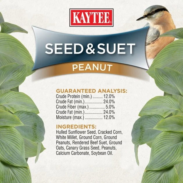 Help keep your lawn clean and local birds happy with Kaytee Seed & Suet No Mess Peanut Wild Bird Food! This bird feedโs unique mix helps keep your hands from getting greasy after handling while leaving no mess on your lawn. It contains both seeds and suet nuggets, which are 100% edible and help attract more birds than just black oil sunflower seeds alone. It can be used in tube, hopper or platform feeders, helping you find the feeder setup thatโs best for your lawn.