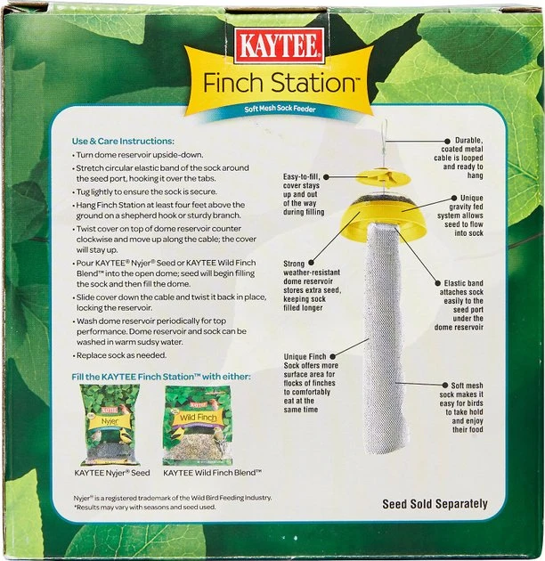 With the Kaytee Finch Soft Mesh Feeding Station, youโll have no problem attracting and feeding your backyard finches. This feeder was made just for them, and it features the soft mesh sock they prefer. The unique design provides tons of perching options and allows numerous birds to eat at the same time. It includes a weather-resistant dome reservoir for extra seed, so you wonโt have to refill as often or disappoint the finches by running out of food.