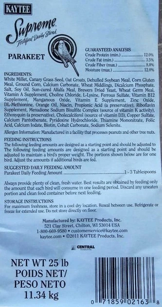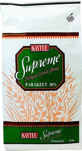 - Comes with 25-lb bag of Kaytee Supreme Parakeet Food and a Sungrow Parrot Chew Toy, Foraging Blocks for Birds in Rainbow Wood.