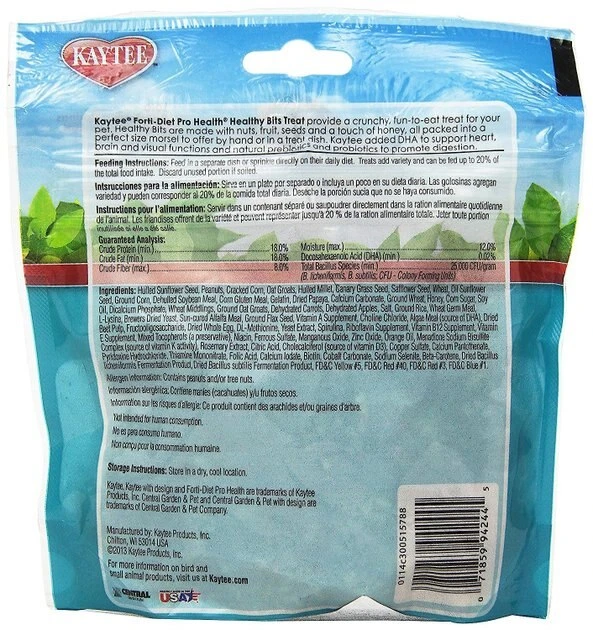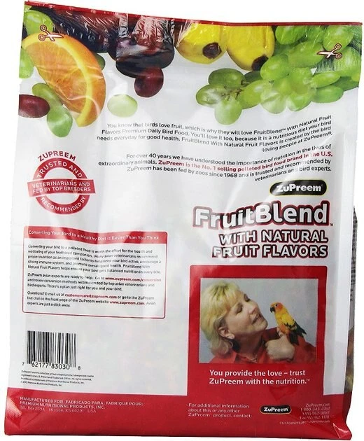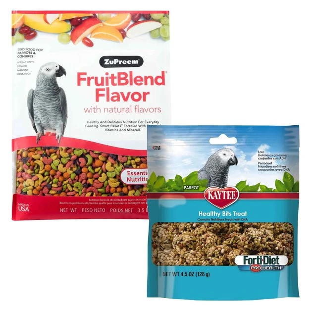 - Comes with a 3.5-pound bag of ZuPreem FruitBlend Flavor Parrot & Conure Food and a 4.5-ounce bag of Kaytee Forti-Diet Pro Health Healthy Bits Parrot Bird Treats.